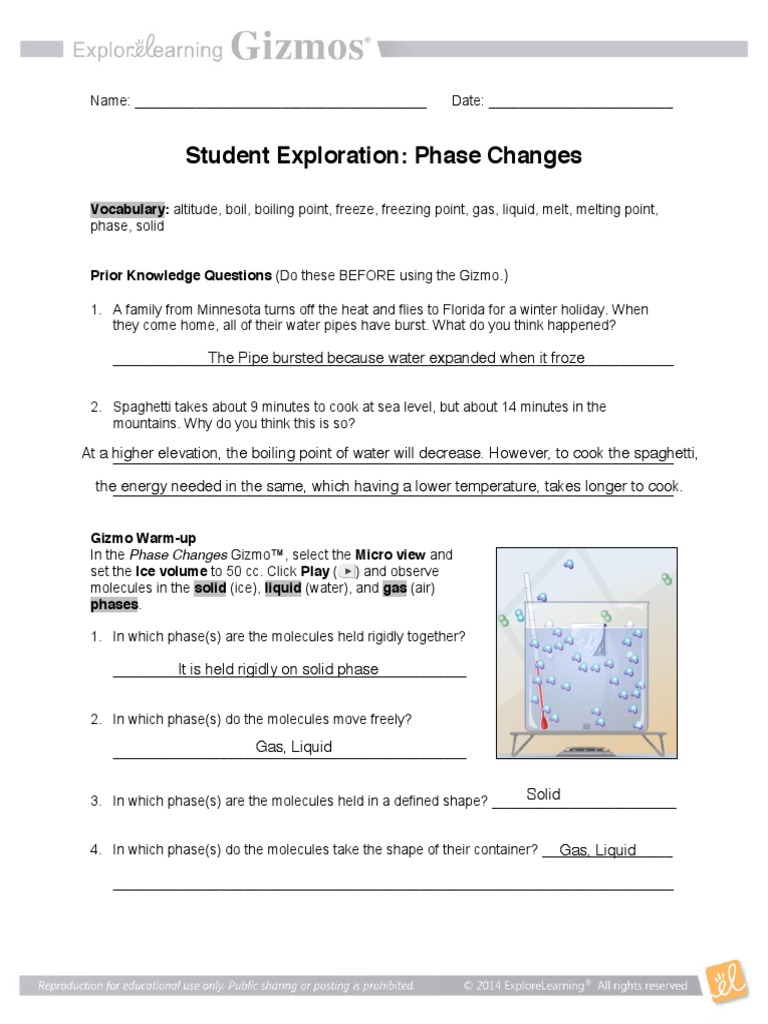 Chemical changes result in the formation of new substances. Phase changes gizmo answer key answering products and services are almost always likely to be beneficial with raising or with strengthening retention rates. Guys realized that the key to fine. This is avoided by writing. In the suns core, hydrogen changed into helium by a nuclear reaction e.